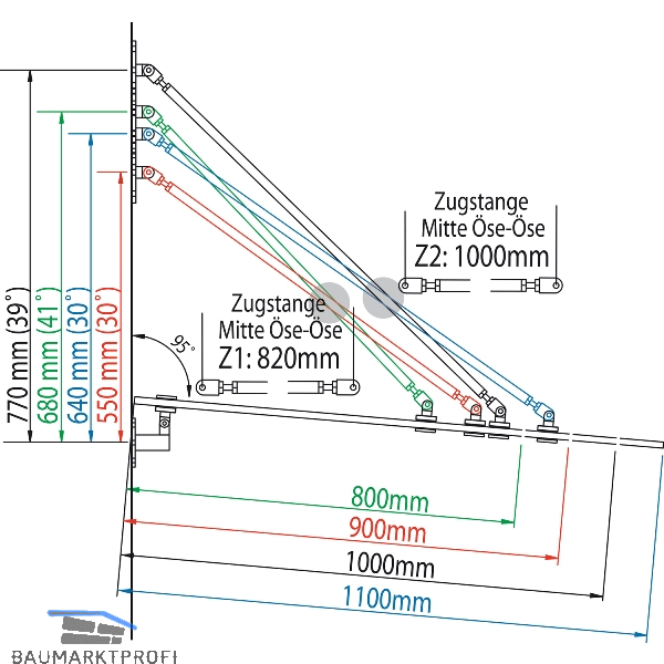es können Ausladungen von 1000 - 1100 mm erstellt werden
