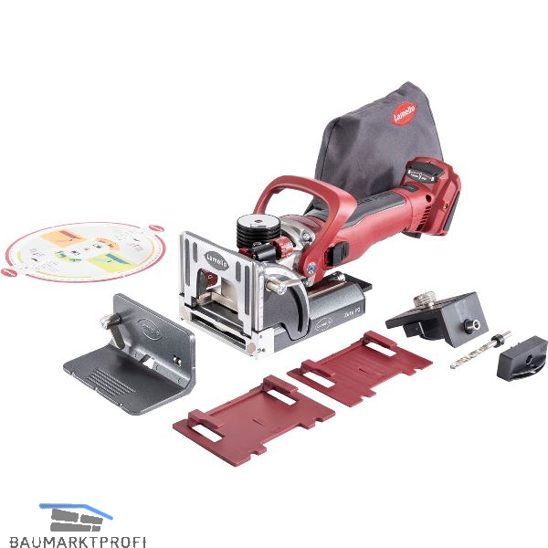 Lieferung inkl. P-System Fräser, Diamant, Anschlagwinkel, Absaugstutzen 36 mm, Winkel Drehscheibe, Aufsteckplatte 2 mm, Aufsteckplatte 4 mm, Werkzeugsatz, P-System Bohrlehre inkl. Bohrer, Staubsack, im Systainer.