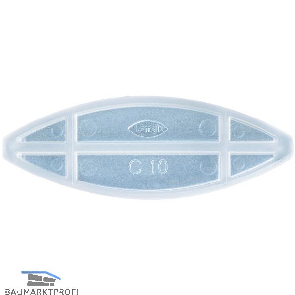 C20 / C10 ist eine Lamelle aus weissem, transluzentem Kunststoff in der Grösse der Nr. 20 / Nr. 10 Holzlamelle.