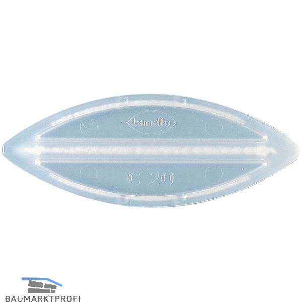 C20 / C10 ist eine Lamelle aus weissem, transluzentem Kunststoff in der Grösse der Nr. 20 / Nr. 10 Holzlamelle.