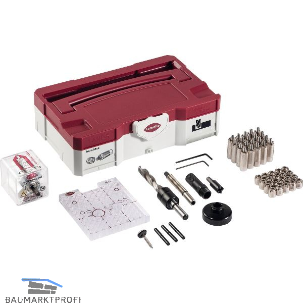 Lieferung inkl. Minimag Mx2, 20 Invis Mx2 Verbinder-Set mit Eindrehmutter 14 mm, Rasto Bohrlehre mit Bohrer 12 mm, Tiefensteller, Aufsteckhülse, Invis Mx2 Eindrehbuchse, Eindrehwerkzeug, Federwelle