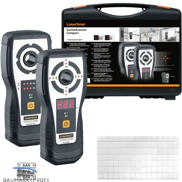 Dieses präzise Bohrführungsgerät bestehend aus Sender und Empfänger ermöglicht die sichere Ausrichtung des Bohrkanals an Wand- und Deckenbohrungen bis 120 cm. Die Ortung erfolgt durch leicht sichtbare LED-Indikatoren und abschaltbare akustische Signale. Gut zugängliche Markierungshilfen in Sender und Empfänger dienen zur Mittenausrichtung. Über die integrierte LCD-Anzeige kann die benötigte Bohrtiefe bis zu 150 cm ermittelt werden. Bei dem Detektieren von Fremdobjekten wird eine optische und akustische Warnung ausgesendet. Dank ergonomischer Bauform liegen Sender und Empfänger gut in der Hand.