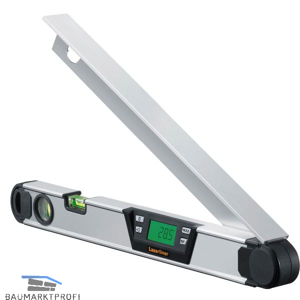 Mit dem digitalen Elektronik-Winkelmesser können Innen- und Außenwinkel genau bestimmt werden, beispielsweise beim Messen von Dachschrägen und dem Einpassen von Möbeln oder Fenstern. Jeweils ein beleuchtetes Display auf Vorder- und Rückseite zeigt die Messwerte in großen Ziffern und bei Über-Kopf-Messungen passend an. Durch die ausziehbare Schmiege kann der Einsatz an schlecht erreichbaren Stellen erfolgen. Die Hold-Funktion ermöglicht, an unzugänglichen Stellen die Anzeige zum späteren Ablesen einzufrieren.