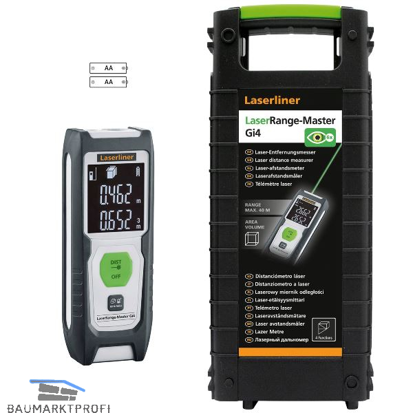 Der Laser-Entfernungsmesser ermöglicht das präzise Ermitteln von Längen, Flächen und Volumen, ideal für die Erfassung von Raumgrößen und das Kalkulieren von Materialmengen. Durch die grüne Lasertechnologie ist die Sichtbarkeit hervorragend. Während Dauermessungen zeigt das LC-Display den größten, kleinsten und den aktuellen Wert an. Ein leicht ablesbares Display, der wählbare Gehäusebezugspunkt und die kompakte Bauform machen die Anwendung komfortabel. Für guten Schutz sorgt das gummierte Gehäuse. Nach kurzen Phasen der Inaktivität schalten sich zuerst der Laser und dann das Gerät energiesparend ab.