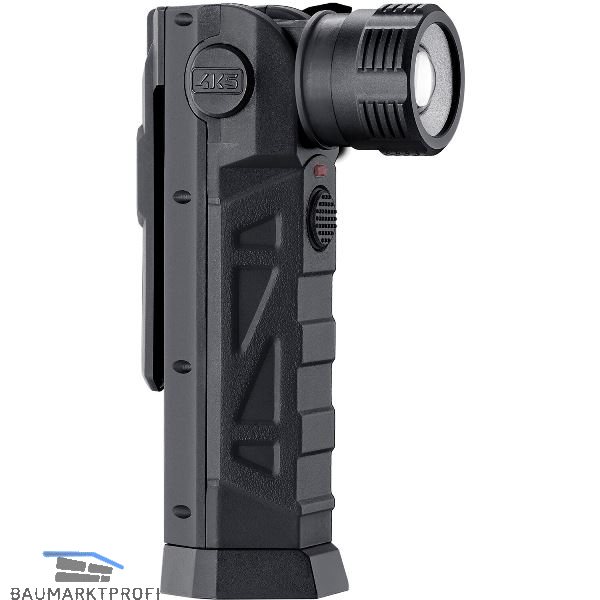 Diese spritzwassergeschützte Taschenlampe ist vielfältig einsetzbar, unter anderem beim Camping und in der Werkstatt. Zum optimalen Ausleuchten des Arbeitsbereiches lässt sich der Leuchtkopf um 90° schwenken. Das Gerät kann in vier verschiedenen Leuchtstufen betrieben werden (High/Boost/Medium/Low). Zwei Magnete ermöglichen das Anbringen an metallischen Oberflächen. Leuchtkraft Low / Medium / High / Boost = 60 / 120 / 250 / 500 lm. Leuchtdauer Low / Medium / High = 50 / 10 / 4 Std. Der Taschenclip dient dem einfachen Transport.