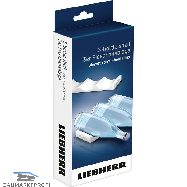 Um bis zu drei Flaschen liegend sicher und platzsparend aufzubewahren, ist die 3er Flaschenablage eine ebenso praktische wie formschöne Lösung. Wird die Flaschenablage nicht benötigt, lässt sie sich schnell aus dem Gerät entfernen oder platzsparend hochkant verstauen.