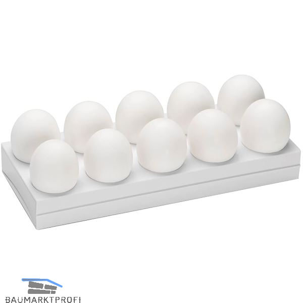 Der variable Eierabsteller ist ausziehbar und dadurch mengenverstellbar. So können bis zu 20 Hühnereier oder umgedreht bis zu 24 Wachteleier stets sicher lagern. Zudem bietet er die Möglichkeit, die Eier mit der spitzen Seite nach unten zu lagern, um deren Haltbarkeit zu verlängern.