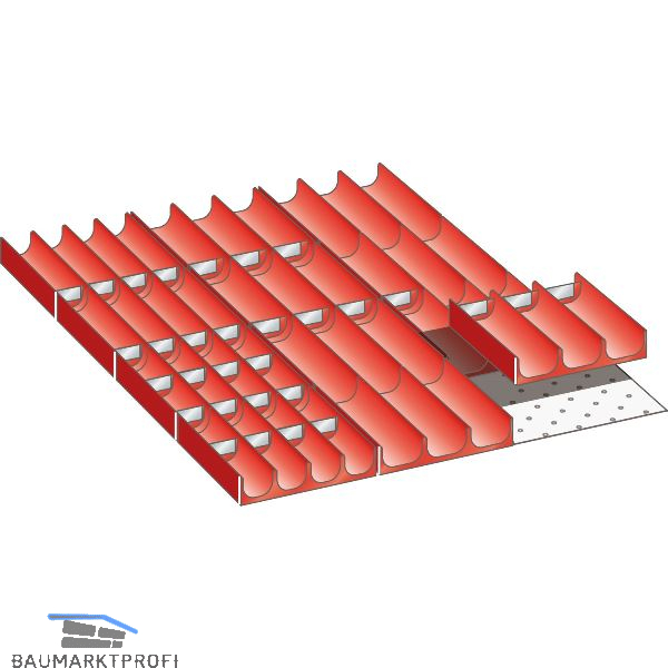 Lieferung inkl. 4 Muldenteile (4-teilig Ø 33 mm), 20 Muldenwände (4-teilig Ø 33 mm),8 Muldenteile (3-teilig Ø 45 mm), 10 Muldenwände (3-teilig Ø 45 mm).