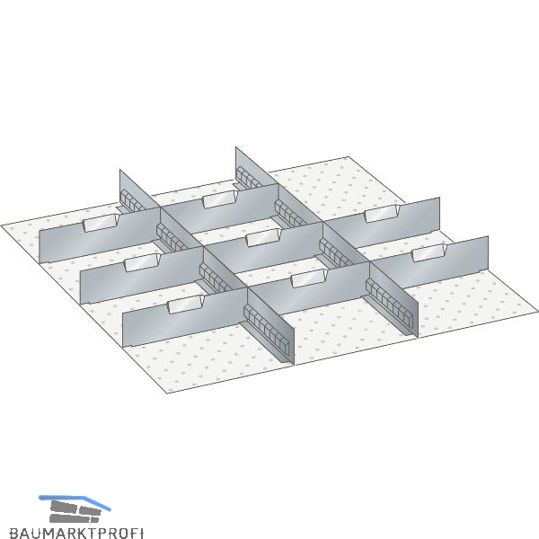 Lieferung inkl. 2 Schlitzwände (36 E), 8 Trennbleche (12 E).