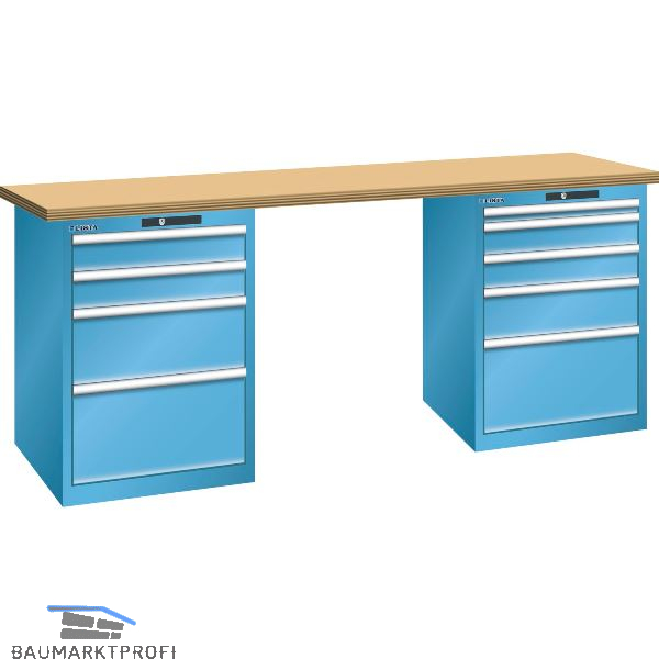Schubladenschrank rechts: 4 Schubladen (Vollauszug), Höhen: 2 x 100 mm, 200 mm, 300 mm;