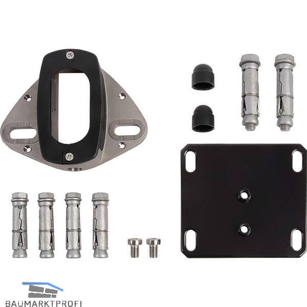 Lieferumfang: Set besteht aus: Bodenscharnier, Wandplatte und Befestigungszubehör