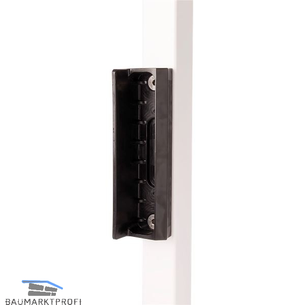 Polyamid-Anschlag für Gartentore. Die einzigartige Quick-Fix-Befestigung sorgt für eine einfache und schnelle Montage auf Vierkantprofilen.