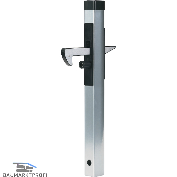 Der regelbare Fanghaken kann einfach umgedreht werden. Durch den Stoßgummi und dem Kunststoff Auflauf des Fanghakens werden Beschädigungen am Tor verhindert.
