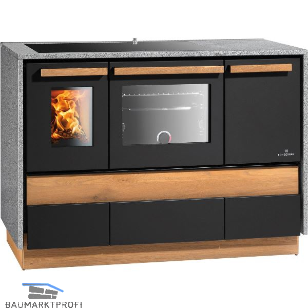 LOHBERGER Festbrennstoffherd Alpin 124 Stand inkl. Stahlkochfeld, Schwarz matt