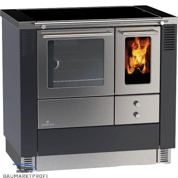 LOHBERGER Festbrennstoffherd LC 75 B Edition schwarz-grau matt inkl. Stahlplatte