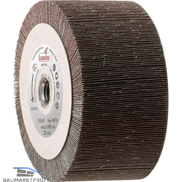 Lamellenwalze aus Schleifleinen,mit Gewinde. NK = Normalkorund. Geeignet für geregelte Winkelschleifer.