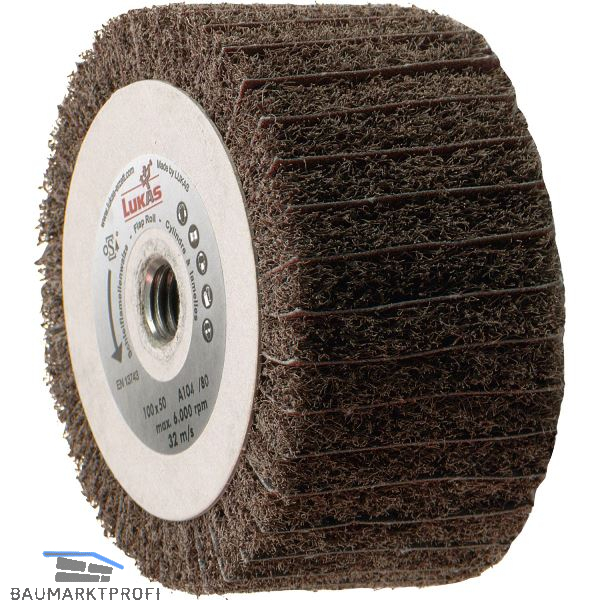 Lamellenwalze aus Schleifvlies/-leinen A = Normalkorund. kombiniert mit Gewinde. Geeignet für geregelte Winkelschleifer.