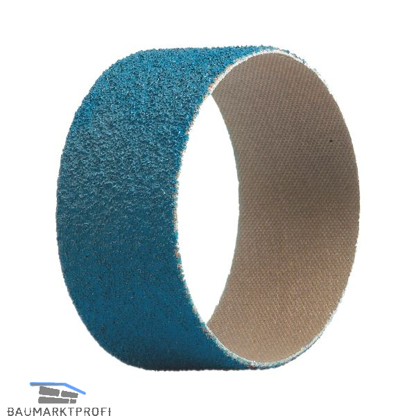 Schleifbänder zylindrisch. Für den Einsatz auf handgeführten Maschinen (Geradschleifer oder Geräte mit biegsamer Welle), aufgespannt auf dazu passenden Schleifbandträgern. Zirkonkorund.