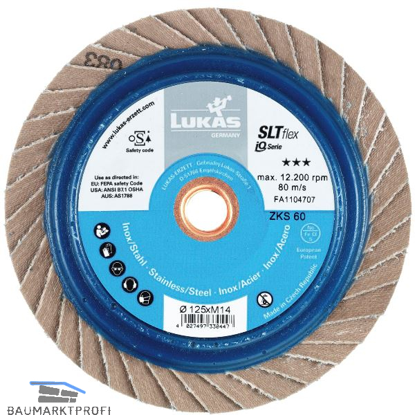 Hoher und schneller Abtrag besonders auf gehärteten Oberflächen, Zunder, Hart-Beschichtungen und Panzerschweißnähten. Ideal geeignet fürs Kehlnahtschleifen - Verrundet Schweißnähte perfekt. Höchste Lebensdauer durch mehrlagigen Schleifbelag. Zerspant auch härteste Werkstoffe effizient. Perfektes Ergebnis auch auf unebenen Oberflächen. Immer frischer Schleifbelag im Einsatz: Verschleiß legt darunterliegende Lamellen frei. Sicheres Arbeiten auch bei hohen Drehgeschwindigkeiten und Temperaturen dank spezieller Harzverklebung.