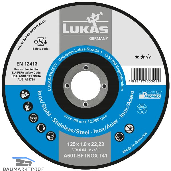 LUKAS Trennscheibe Promax** gerade Form 125 x 1.0 mm Inox/Stahl
