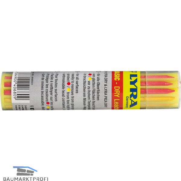 Für alle Oberflächen geeignet. Mit feuchtem Tuch auf glatten Oberflächen abwischbar. Rot/gelb vor zu hohen Temperaturen schützen. In bruchsicherem Minen-Magazin, leicht entnehmbar. Universalgröße Ø 2,8 mm.