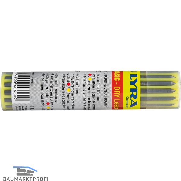 Für alle Oberflächen geeignet. Mit feuchtem Tuch auf glatten Oberflächen abwischbar. In bruchsicherem Minen-Magazin, leicht entnehmbar. Universalgröße Ø 2,8 mm.
