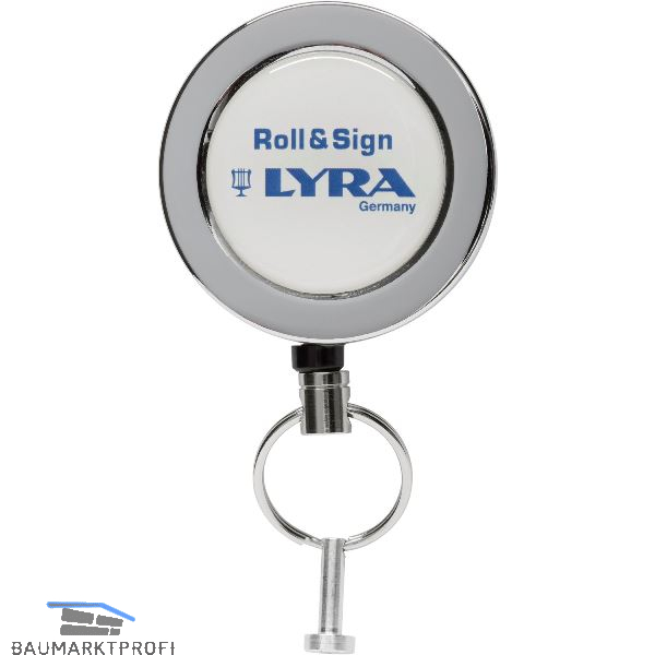 Werkzeughalter mit Aufrollmechanismus, 120 cm langes Stahlseil mit Kunststoffummantelung.