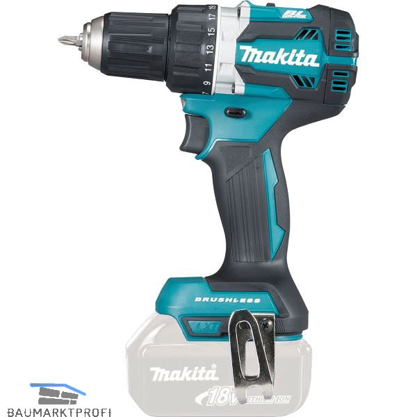 Durch Verwendung eines BL (Brushless) Motors wird die Akkukapazität noch effizienter genutzt als mit herkömmlichen Elektromotoren. XPT (eXtreme Protection Technology) - Staub und Spritzwasser geschützt. Mechanisches 2-Gang-Planetengetriebe mit Metallzahnrädern. Schnellspannbohrfutter für Einhandbedienung und Spindelarretierung. LED-Arbeitslicht. Drehzahlregelung über Schalter. Drehmomenteinstellung in 21 Stufen. Elektronik, Motorbremse, Rechts-/Links Lauf, rutschfester Handgriff mit eingelegtem Gummipolster.