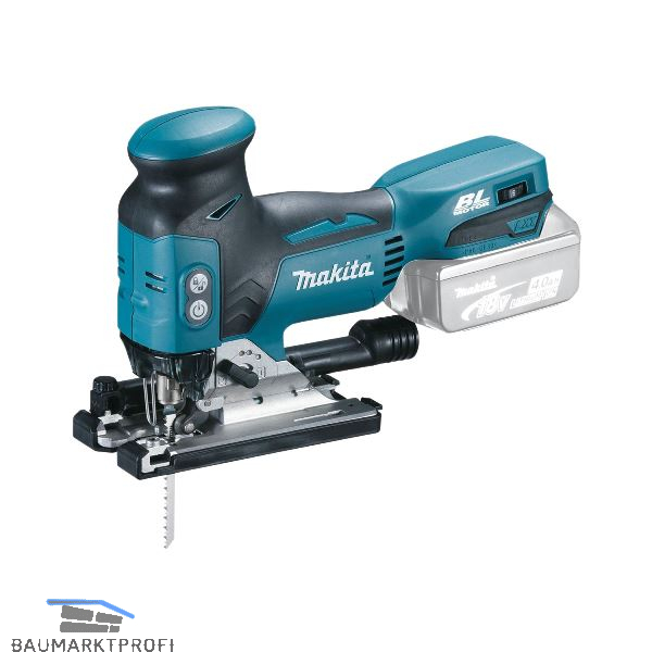 Kompakte Akku-Stichsäge. Sanftanlauf ermöglicht präzises ansetzen, mit BL (Brushless) Motor wird die Akkukapazität noch effizienter genutzt, Schalter auf beiden Seiten des Gehäuses, Stufenlos regelbare Hubzahl, werkzeugloser Blattwechsel, Motorbremse und Sicherheitsschalter, LED-Beleuchtung, Fremdabsaugung anschließbar, 4-stufiger Pendelhub.