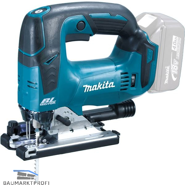 Kompakte Akku-Stichsäge. Sanftanlauf ermöglicht präzises ansetzen, mit BL (Brushless) Motor wird die Akkukapazität noch effizienter genutzt, Schalter auf beiden Seiten des Gehäuses, Stufenlos regelbare Hubzahl, werkzeugloser Blattwechsel, Motorbremse und Sicherheitsschalter, LED-Beleuchtung, Fremdabsaugung anschließbar, 4-stufiger Pendelhub.