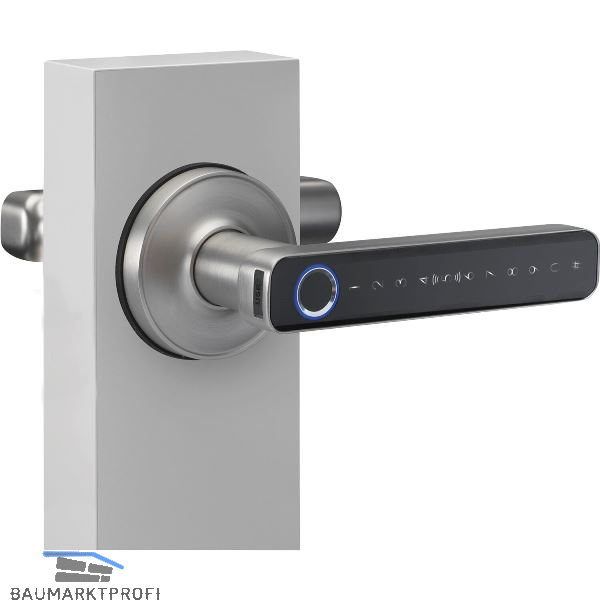 Der Fingerprint-Türgriff Office ermöglicht den einfachen Zugang über einen biometrischen Fingerabdruck sowie per Zifferncode, ID-Card (ID Card bei Drücker mit runder Rosette) und per Handy-App. Bei erfolgreicher Authentifizierung kuppelt der bis dahin freigeschaltete Türdrücker auf der Außenseite ein und betätigt die Schlossfalle. Das Gerät kann bis zu 50 Finger, 50 Zahlencodes und 50 ID Cards (ID Card bei Drücker mit runder Rosette) verwalten. Der Innentürgriff ermöglicht jederzeit das Öffnen der Tür (Notfunktion), der Außentürgriff kann alternativ mit einem mechanischen Schlüssel bedient und notentriegelt werden. Über die Tuya App können alle Berechtigten verwaltet werden.