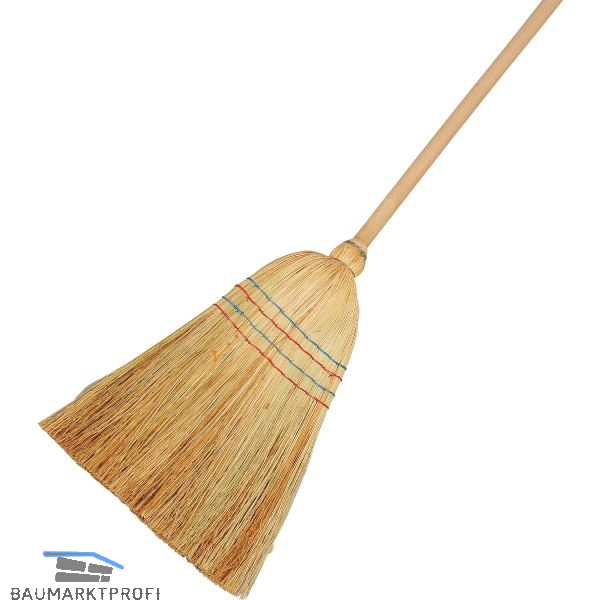 Reisstrohbesen mit Holzstiel und 4rer Naht. Besonders für den Außenbereich geeignet. Ideal zum Kehren von Garagen, Werkstätten, Terrassen usw.