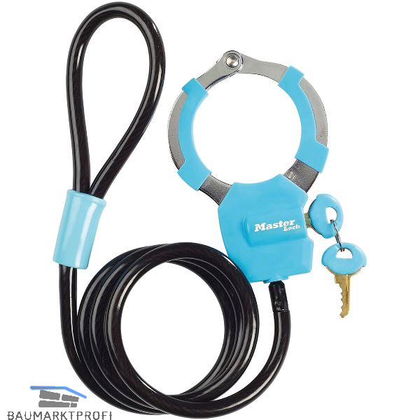 Das Master Lock Kabelschloss Street Cuff ist 1 m lang und verfügt über ein Kabel aus geflochtenem Stahl mit 8 mm Durchmesser für maximale Stärke und Flexibilität. Diese Diebstahlsicherungsschlösser eignen sich perfekt zur Sicherung von E-Rollern, Fahrrädern oder Kinderwagen. Der Clip (Handschellendesign) erlaubt eine große Flexibilität und kann an vielen Arten von Trägern befestigt werden: Räder, Fahrradlenkerstangen, Roller-Elektronik oder Roller-Unterbau.