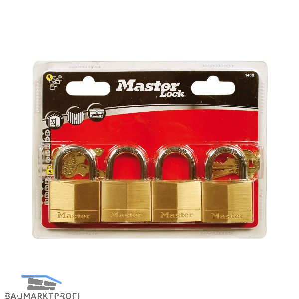 Vorhangschloss aus MessingBügel aus gehärtetem Stahl4-Stift-Zylinder mit doppelter Verriegelungje 4 Stk. in Blisterverpackung