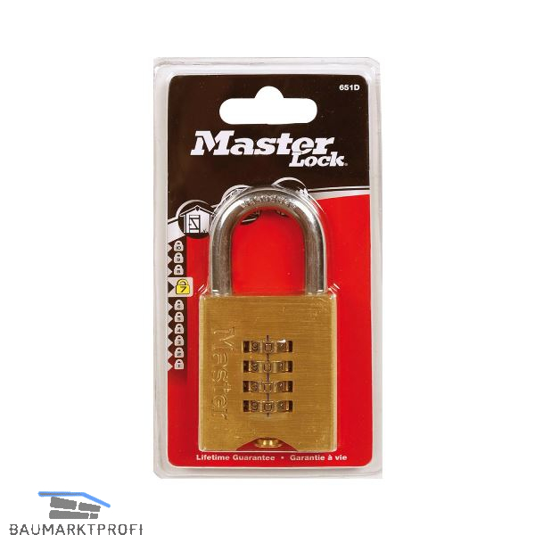 Zahlschloss aus MessingBügel aus gehärtetem Stahleinstellbare 4-stellige Zahlenkombinationdoppelte KugelverriegelungDruckknopf zum Öffnen des Bügelsje 1 Stk in Blisterverpackung