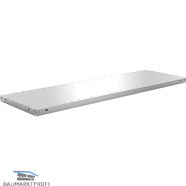 Regalboden MS150-III verzinkt. Bodenabkantung 40 mm, ohne Fachbodenträger. Mit Systemlochung im 50 mm Raster. Geschlossene Ecke und Zugstrebe, offene C-Kanten in Tiefenrichtung, geschlossener Längskanal. Passend zu Schraub- und Steckregal.