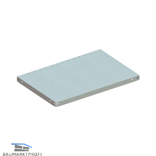Regalboden Standard 100 verzinkt, Bodenabkantung 40 mm, ohne Fachbodenträger. Mit Systemlochung im 50 mm Raster. Passend zu Schraub- und Steckregal.