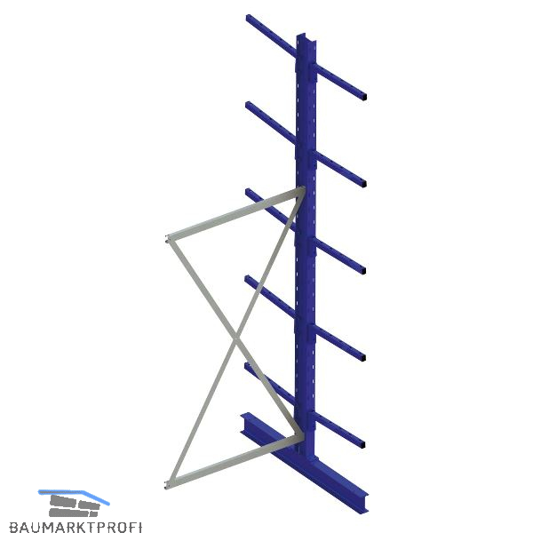 Regal für leichte Lastanforderungen, für liegende Langgutware, Lagerung von Tafel- und Plattenware. Kragarme im Raster von 100 mm verstellbar, stabile Qualität der Spitzenklasse. Perfekte Sicherheit. Aushebesicherung sichert zuverlässig die Kragarme gegen das unbeabsichtigte Ausheben bei der Ein- oder Auslagerung. Eingesteckte Kragarme mit Feststellschraube, jederzeit höhenverstellbar und nachträglicher Umbau möglich. Achsmaß 1030 mm. Farbe RAL 5010 enzianblau, inkl. Tragkraftschilder.