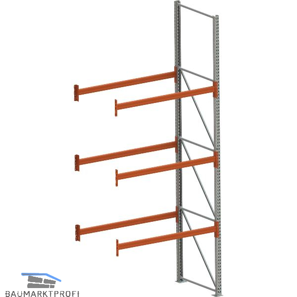 Modernes, ausgereiftes Palettenregalsystem für die Lagerung von leichten bis mittelschweren Paletten oder Stückgut, Längs- oder Quereinlagerung, möglich 4-Haken-Agraffe im 50 mm Raster höhenverstellbar, geschlossene Kastenprofile garantieren eine hohe Stabilität, Ständer bestehen aus kaltverformten Profilen, die bauseits mit der Ausfachung verschraubt werden.