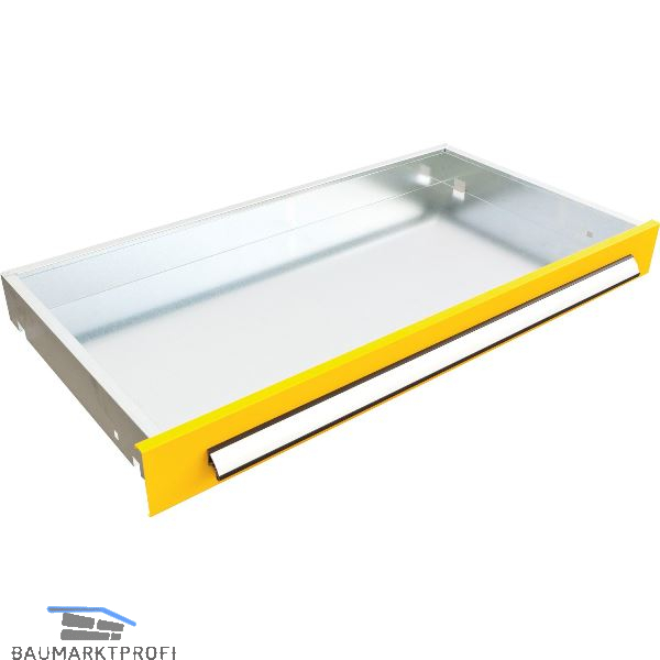 Schublade Basic für Regalbreite 1000 mm. Vollauszug mit Auszugverriegelung, beim Aufziehen einer Schublade werden die anderen automatisch blockiert, Sicherheit gegen Kippen und Klemmen.