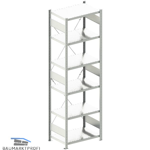 Die Rahmen werden aus bandverzinktem Qualitätsstahlblech gefertigt. Für die einfache und schnelle Steckmontage. Größen individuell anpassbar. Fachböden im Raster von 25 mm verstellbar für die variable Anpassung an das Lagergut.