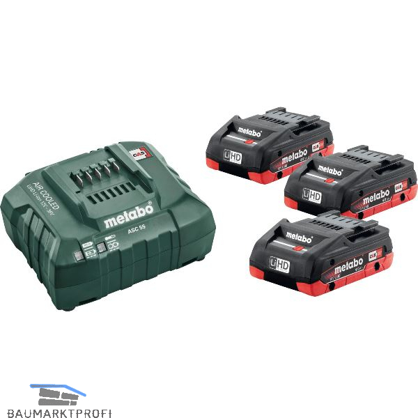 Lieferung inkl. 3 x 18 Volt / 4,0 Ah LiHD Schiebe-Akkus und ASC 55 Ladegerät, im Karton.