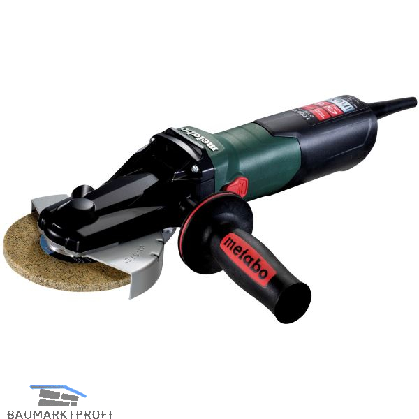 Handlichster Flachkopf-Winkelschleifer mit Drehzahlregulierung für die perfekte Edelstahlbearbeitung z.B. von Stacheten. Minimalster erreichbarer Winkel 43º. Speziell entwickelt zum Entfernen von Schweißschlacke, Rost oder Lack in engen Rahmenkonstruktionen und zum Arbeiten in Zwangslagen. Metabo Marathon-Motor mit patentiertem Staubschutz. Vario-Constamatic (VC)-Vollwellenelektronik mit Stellrad zum Arbeiten mit materialgerechten Drehzahlen, die unter Last nahezu konstant bleiben. Metabo Quick für werkzeuglosen Scheibenwechsel durch Schnellspannmutter. Werkzeuglos verstellbare Schutzhaube verdrehsicher fixierbar. Elektronische Sicherheitsabschaltung, reduziert Kick-Back beim Blockieren der Scheibe. Elektronischer Überlastschutz, Sanftanlauf und Wiederanlaufschutz. Getriebegehäuse in 90°-Schritten gedreht montierbar für linkshändige Bedienung oder zum Trennen. Abschaltkohlebürsten zum Schutz des Motors.