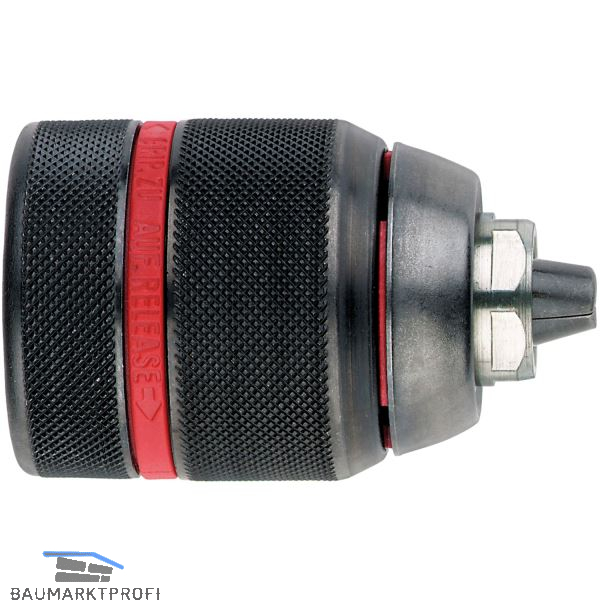 Spezielle Entwicklung für Schlagbohrmaschinen. Stabile Ausführung mit Metallhülse. Ausführung 636619000 mit Hartmetallbacken 2-hülsig mit Radialverriegelung für festen Sitz der Werkzeuge. Schlüssellos für schnellen Werkzeugwechsel. Schlagbohrfeste Ausführung. Durchbohrt mit Sicherungsschraube für R+L-Maschinen. Mit Schlüsselfläche zur Montage und Demontage.