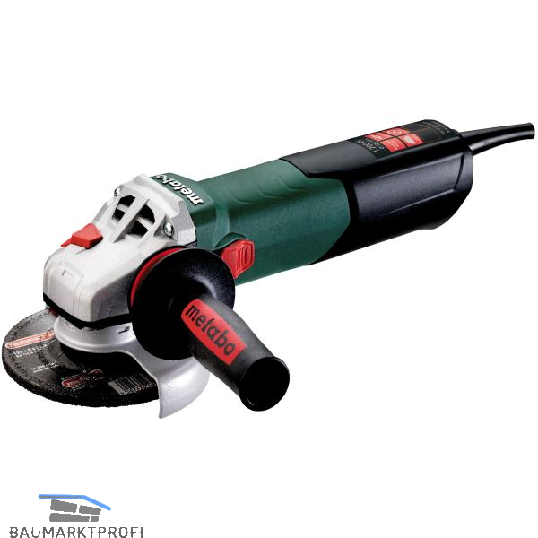 Winkelschleifer mit der Leistung eines großen und der Handlichkeit eines kleinen Schleifers für schnellsten Materialabtrag in industriellen Anwendungen. Metabo Marathon-Motor mit patentiertem Staubschutz, bis zu 20% mehr Überlastfähigkeit und 50% mehr Drehmoment. Tacho-Constamatic (TC)-Vollwellenelektronik konstante Drehzahl unter Last. Werkzeugloser, schneller Scheibenwechsel auf Knopfdruck. Werkzeuglos verstellbare Schutzhaube, verdrehsicher fixierbar. Vibrationsarmer Zusatzhandgriff Metabo VibraTech (MVT). Mechanische Sicherheitskupplung minimiert Kick-Back beim Blockieren der Scheibe. Elektronischer Überlastschutz, Elektronischer Sanftanlauf, Wiederanlaufschutz nach Stromunterbrechung. Getriebegehäuse in 90°-Schritten gedreht montierbar für linkshändige Bedienung oder zum Trennen. Abschaltkohlebürsten zum Schutz des Motors.