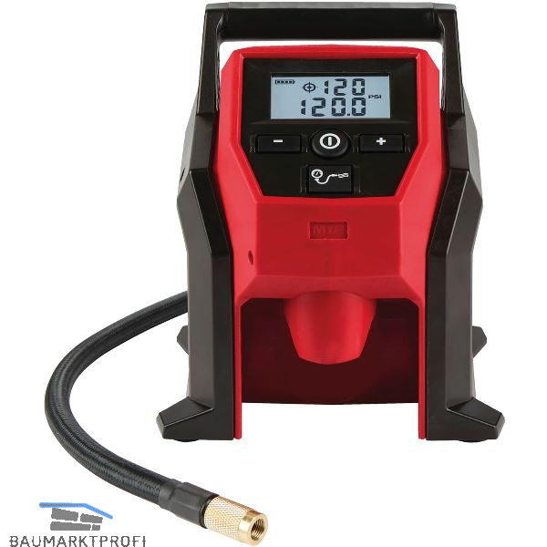 Ideal zum Aufpumpen von Autoreifen. Kompaktes Design. Anti-Vibrations-Fuß – Gummierung verhindert ein Rutschen des Geräts bei Nutzung. Auto-Shutoff-Funktion – Gerät schaltet sich nach Erreichen des vordefinierten Drucks automatisch ab. Beleuchtetes LCD-Display mit digitaler Druckanzeige. Einfache Aufbewahrungsmöglichkeit für den Schlauch (66 cm) am Gerät vorhanden.