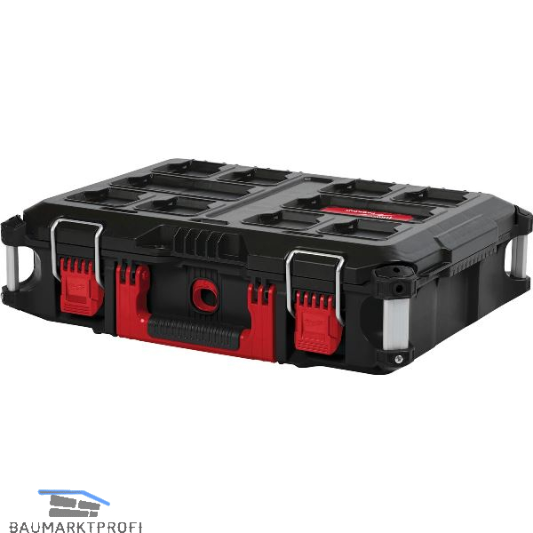 Aus dem modularen Aufbewahrungssystem PACKOUT™. Konstruktion mit stoßfesten Polymeren - ideal für den Baustelleneinsatz. IP65 Schutzklasse schützt vor Staub, Wasser und Schmutz. Metallstreben verstärken die Kofferecken. Verschlüsse mit Metallschließen. Inklusive zusätzlicher Boxen zum übersichtlichen Verstauen von Kleinteilen. Einbaumöglichkeit für den ONE KEY™ TICK™. Zusätzlicher Metalltragegriff im Kofferdeckel zum leichteren Transport (nur beim großen Koffer).