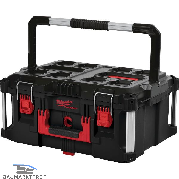Aus dem modularen Aufbewahrungssystem PACKOUT™. Konstruktion mit stoßfesten Polymeren - ideal für den Baustelleneinsatz. IP65 Schutzklasse schützt vor Staub, Wasser und Schmutz. Metallstreben verstärken die Kofferecken. Verschlüsse mit Metallschließen. Inklusive zusätzlicher Boxen zum übersichtlichen Verstauen von Kleinteilen. Einbaumöglichkeit für den ONE KEY™ TICK™. Zusätzlicher Metalltragegriff im Kofferdeckel zum leichteren Transport (nur beim großen Koffer).