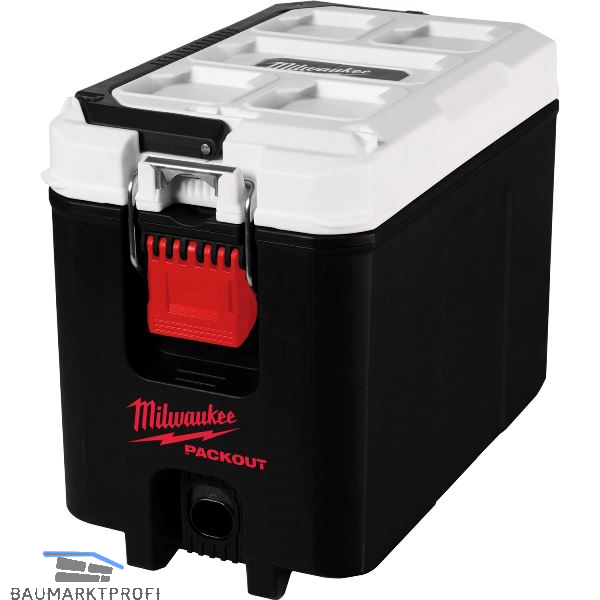 Doppelte Isolierung hält den vorgekühlten Inhalt bis zu 30 Stunden kühl. Schutzklasse IP 65 gegen Schmutz und Wasser sowie auslaufsicher zur Bewahrung der Lebensmittel. Integrierter Flaschenöffner. Herausnehmbares Tablett. Konstruktion aus stoßfesten Polymeren - ideal für den Baustelleneinsatz. Aus dem modularen Aufbewahrungssystem PACKOUT™.