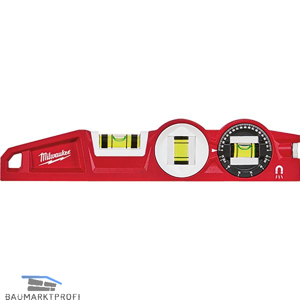 Die Libellentechnologie sorgt für ein besonders einfaches und präzises Ablesen. Dank der verstellbaren 360°-Winkel-Libelle können Winkel mühelos gemessen und übertragen werden, wobei die Arretierung eine hohe Genauigkeit selbst bei Unterbrechungen garantiert. Für maximale Haltekraft wird das Magnetfeld der Seltenerdmagnete durch eine Eisenplatte optimal umgeleitet. Die verstärkten Libellen sind in einem robusten Acrylblock eingefasst, während das Druckgussaluminium-Profil mit präzise gefrästen Messflächen und V-Nut für Rundmaterial überzeugt. Zusätzlich erleichtert eine Lochung die Fixierung an einer Milwaukee® Werkzeugsicherung, und die Messgenauigkeit beträgt beeindruckende 0,029° (0,5 mm/m).